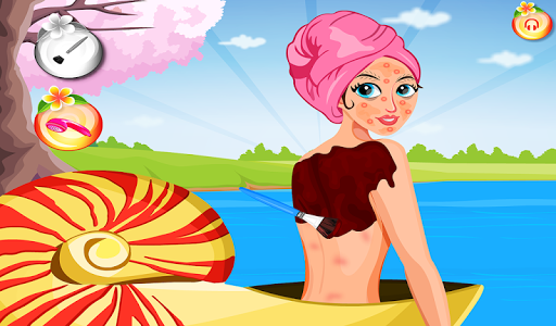 As in a real spa we need to make sure that everything is perfect, the music and the place must be relaxing and comfortable. First start with the body, add some body lotion and mask to treat the red zones on your back. Then move to the face where it’s a little more work to do. All kind of masks, creams and lotions…for you to make you feel fresh and new.