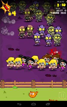 when the onslaught of zombies run at you tap screen or slash the screen to kill them, silly zombies these will run down the screen towards the fence thats your defence line & the zombies will try to break your fence line & smash through. on your side of the fence stop zombies to crash or break your defence line,