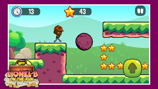 Lionel B w biegu to niekończąca się prowadzona mobilna gra przygód, w której gracz jest Lionel B, Blogger Celebrity YouTube z Lionel B Show to główny bohater, Leylah super biodra czarna kobieta lub słodkie i przytulnie niedźwiedź o nazwie gourgy. Po grabieży złoto z Skarbu USA gracz goni do wolności po tym, jak Bank Heist unikał ogromnych głazów podczas ucieczki. Gdy biegają, chwytają złote gwiazdy z powietrza, jednocześnie unikając kolizje z cierniami i innymi przedmiotami, a także mogą skoczyć na szczycie wzgórz, aby szukać skrótów. W tej trudnej grze biegu będziesz mieć proste kontrole gry. Gracze Lionel B w biegu znajdą łatwe przyciski dotykowe na ekranie do skoków, fotografowania i poruszania się we wszystkich kierunkach. Możesz uruchomić, dopóki nie chcesz, chyba że trudne przeszkody uniemożliwiają pójście.