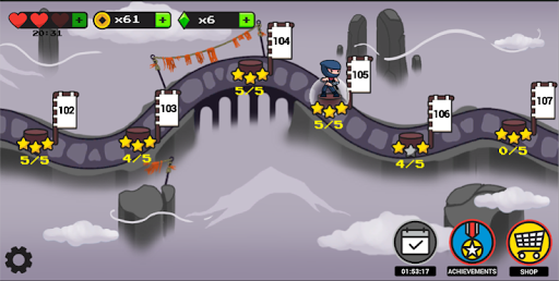 -5 Różne cele, aby odblokować, że można znaleźć w dowolnym momencie! Pokonaj gniewnych wrogów ze swoim mieczem, zbieraj podstępne pierścienie, znajdź zagubione zwoje, dotrzeć do wyniku Combo lub dotrzeć do bramki na odległość!