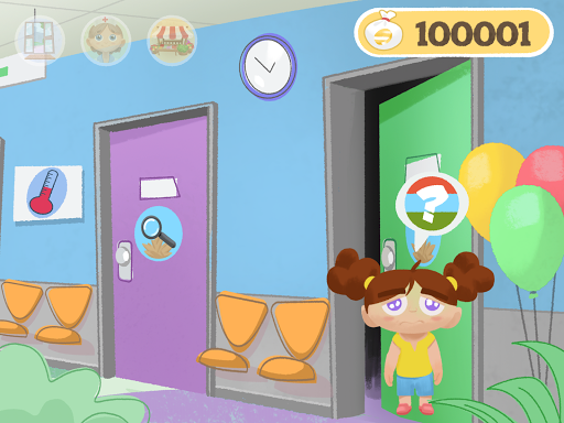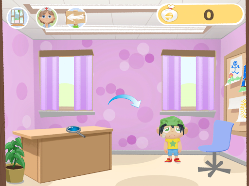 In the treatment rooms at your practice you can help patients recover from hearing problems and pains and you can also remove splinters. Use your finger to move your patients to the right room to start your examination or treatment.