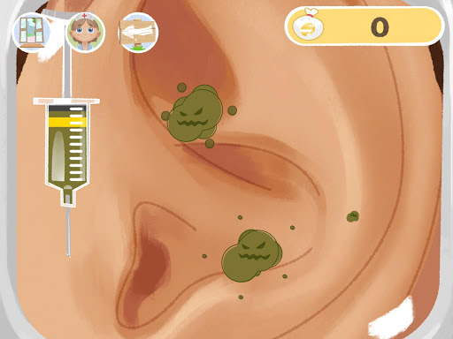 Listen with your stethoscope to the heartbeat and decide what medicine you need to make. If your patient has problems hearing, you can cure him by syringing their ears. Find the painful splinters and remove these with your tweezers.