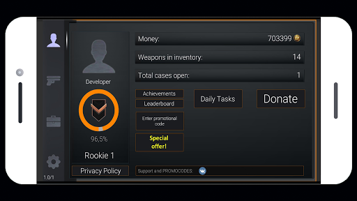 Gra ma całą broń z popularnej gry.Oprócz zwykłych pudełek i przypadków, jest dostępna tajemnica, w której najdroższe bronie są ukryte!