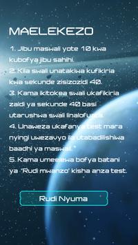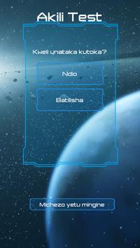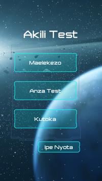 Akili test hukupa maswali tofauti kwa ajili ya kujua uwezo wako wa kufikiri. Na maswali hayo yapo katika kujua uwezo wako wa hesabu,kung`amua baadhi ya mambo na mengine kwa uwezo wako wa kufikiria utaweza kuyapata. Kama swali utakua umepata basi utaonyeshwa alama ya vema na kama umekosa basi utaona alama ya kosa. Na mwisho utaona umepata ngapi katika maswali mangapi.