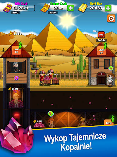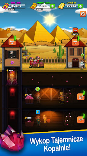 Nawet jeśli jesteś offline w tej bezczynnej grze górniczej, twoi górnicy będą dalej kopać, a ty nadal będziesz zarabiać pieniądze i złoto!