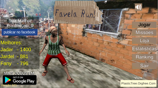 Corra pela Favela desviando e saltando obstáculos e córregos.