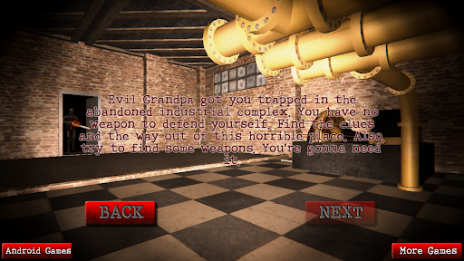 Zły dziadek wpadł w uwięziono w opuszczonym kompleksie przemysłowym.Nie masz broni, aby się bronić.Znajdź wskazówki i wyjście z tego okropnego miejsca.Spróbuj także znaleźć broń.Będziesz tego potrzebować.
