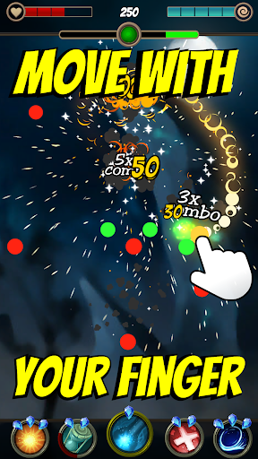 Move the magic ball with your finger. Dodge one color while smashing the other! Be fast enough and beat your high score to unlock new spells!