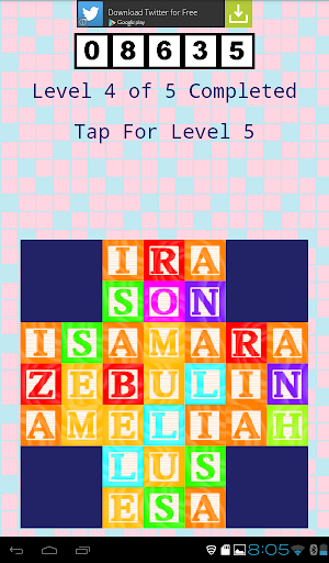Baby Names Game is a fun and entertaining puzzle game that will get your mind working overtime. The puzzles get increasingly more difficult as you work your way through each of the five levels.