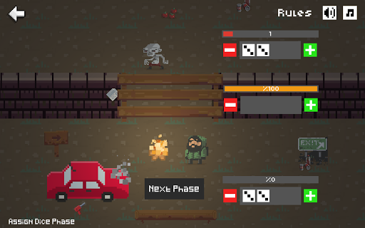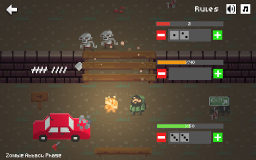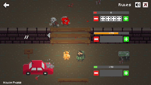 Escape of the Dead is a solo game. In the game you are trying to fix the car while trying to defend yourself against hordes of zombies. You're given 4 Action dice per turn, distribute between 3 sections of the game (either by shooting zombie, fixing the barricade and/or fixing the car). Roll for success on each section. Any zombie that survived will attack the barricade. When you successfully killed 10 zombies you will be rewarded with power-up. You lose when your barricade is down (i.e barricade's hp equals zero). You win when the car is fixed 100% and get out of the house.
