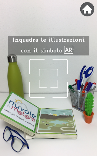 Cerca e inquadra con la fotocamera del tuo smartphone o tablet le illustrazioni contraddistinte dal simbolo AR che trovi all'inizio di ogni capitolo del booklet che hai ricevuto a scuola (se la tua classe partecipa al progetto) o che è possibile scaricare dal sito web del progetto (www.nuvoleamotore.it).