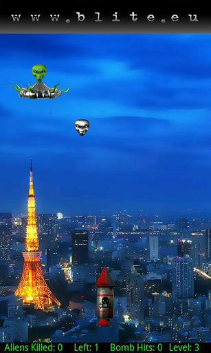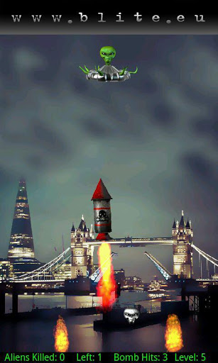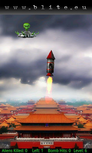 Slide your finger over the rocket to launch it against hostile aliens and their bombs. Protect ten main cities of Earth, one for each level. That’s it. Simple and amusing.