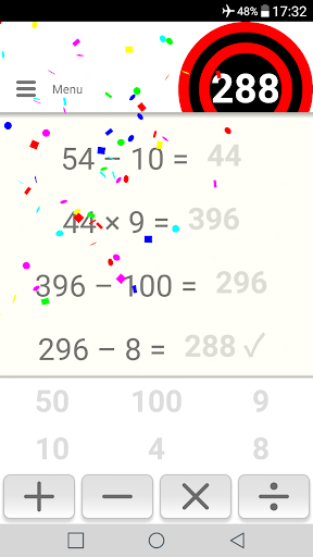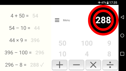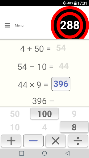 Musisz pasować do numeru docelowego, łącząc liczby odtwarzania za pomocą dodawania, odejmowania,mnożenie lub podział.
