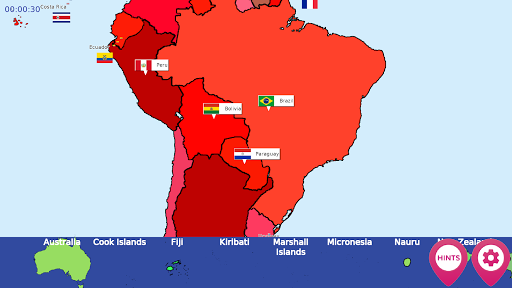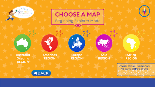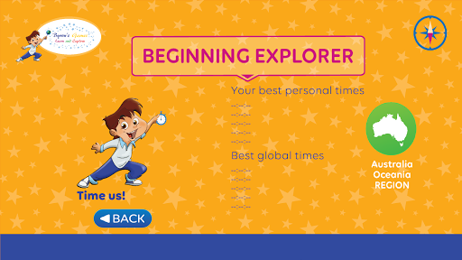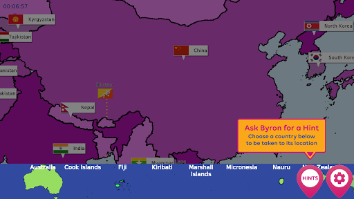 Have fun learning world geography as you drag and drop countries into the world map. See their national flags appear with a fun star burst as you place them. Still learning where the continents and countries are located? No problem, use the Hint button to get some help from Byron.
