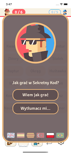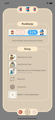 Tylko lider zespołu może zobaczyć kolor kart (tajny kod), naciskając przycisk "Zobacz tajny kod" w lewym dolnym rogu ekranu.