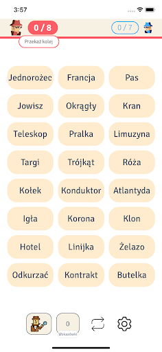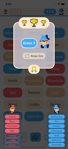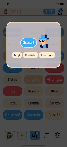 * Słowo-wskazówkę można wybrać dowolnie, o ile nie zawiera żadnego ze słów z kart, które są nadal wyświetlane na planszy.