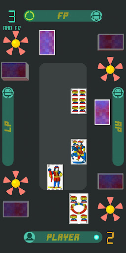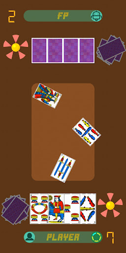 jest grana z hiszpańskim pokładem, który jest zbudowany z 40 kart: 10 liczb i 4 symboli;Liczby to naprawdę liczby, ale symbole mogą być przydatne do zapamiętywania.