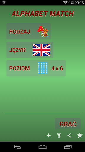 Alphabet Match Plus to zabawna i edukacyjna gra, która łączy w sobie popularną koncepcję gry pasującej do pary pamięci z łatwym do opanowania podejściem do zapamiętywania alfabetów różnych języków. Dzięki opcji Alphabet Match Plus możesz zrelaksować się w prostym trybie dopasowywania par lub możesz wybrać zaawansowaną opcję "list do słowa", aby ćwiczyć zapamiętywanie obcych alfabetów, liter i słów.