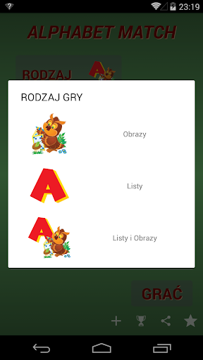 - Tryby dopasowywania 3 par (litery, litery-obraz / słowo i po prostu słodkie obrazy)