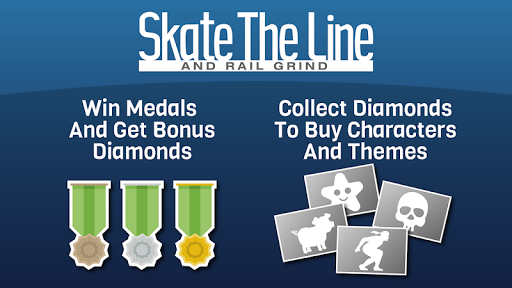 Skate the line while getting points from picking up diamonds and grinding on the rails but avoid the spikes. Use the diamonds you collect to buy other skate characters and themes. Use the right arrow button to move forward, the up arrow button to jump and the skateboard icon button to level out the skateboard.