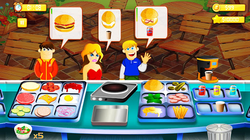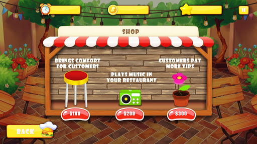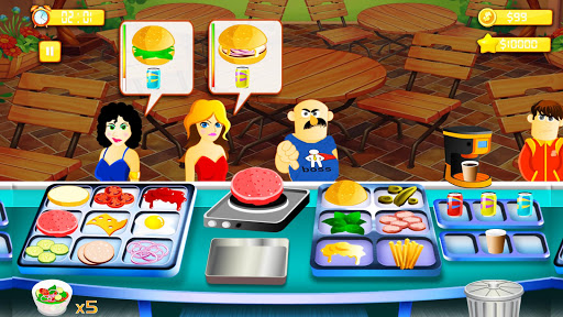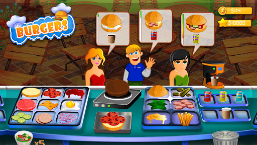 Upgrade the kitchen in your restaurants using money that you earn to provide your customers with different types of food and cook hamburgers, triple cheeseburgers, chicken sandwiches, onion rings, Tea, salads, sodas, ice cream sundaes and much, much more! Build more cooking machines and open different restaurants.