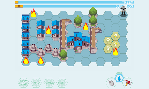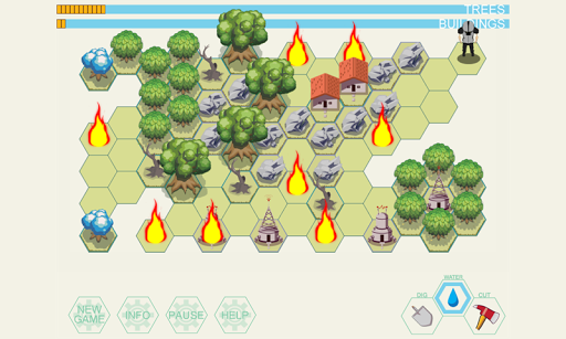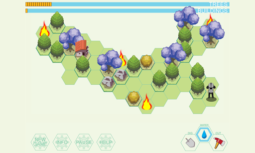 Urządzenie Deus, zła maszyna, ustawiła pożary do pięciu regionów.W tej akcji jest twoja praca jako twoja praca jako wojownik, aby zgasić wszystkie pożary.Wyciągnij pożary, zanim niszczą budynki i drzewa.Te pożary szybko się rozprowadzają, ale można użyć toporu, wody i łopaty, aby uzyskać kontrolę po pożarach.