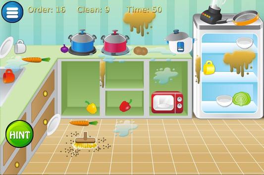 To play house and kitchen clean only have a minute to fulfill your mission and place all clean, be very intense touches the screen to dislodge everything and start cleaning all the dirt on squeezing passes the sponge to clean the kitchen and the refrigerator and the broom to clean the floor, to know what goes where press the HINT button to display the site where everything leaves the house ready to pass the level in the game.
