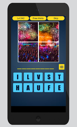 Wskazówka pomoże Ci ukryć niechciane litery i układając 4 kawałki zdjęć w taki sposób, że utworzy odpowiednie zdjęcie. Ma również ekran poziomu, dzięki którym możesz przejść do dowolnego poziomu.