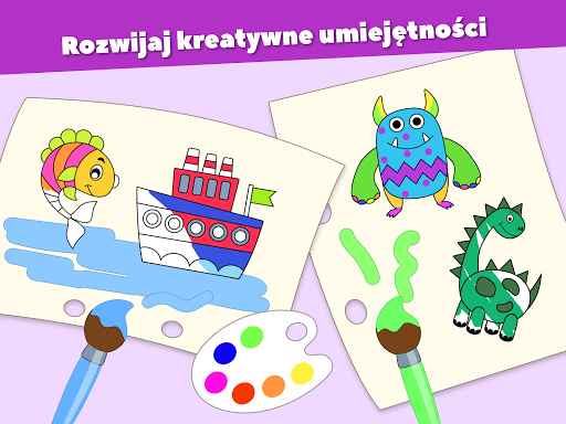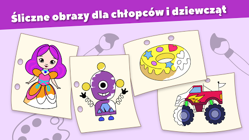 Wszystkie kolorowanki zawierają obrazki, które będą interesujące zarówno dla chłopców, jak i dziewczynek w wieku przedszkolnym. Śliczne kolorowanki z dinozaurami, zwierzętami, potworami i innymi postaciami poruszy uczucia każdego. Aplikacja zawiera specjalną kategorię księżniczek dla dziewczynek i samochodów dla chłopców.