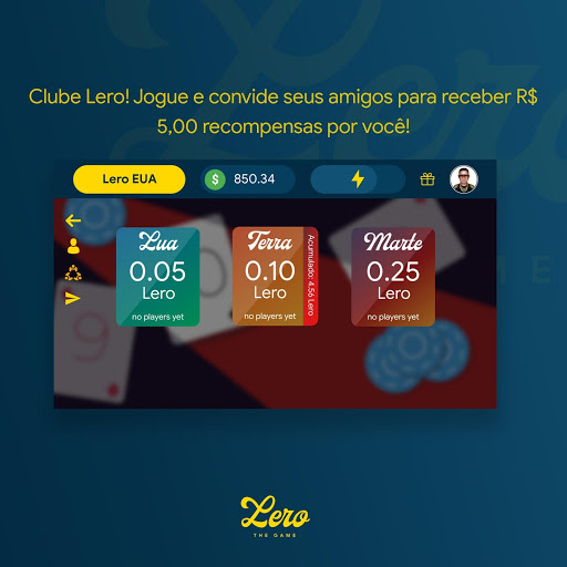 - Escolha uma mesas com valores de LERO$ (*dinheiro fictício).