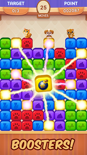 The mission for rescuing pets is on🟢, Save the cute pets by blasting toy blocks. Match two or more toy color cubes of the same color and combine boosters for huge explosions to bang your way in the rescue mission game! Challenge your matching skills and solve unique puzzles to save cute pets from danger.