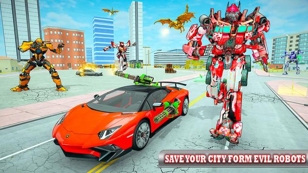Witamy w futurystycznej grze transformującej samochód Dragon Robot Lambp. To jest robot transformujący latającego smoka, walka między robotami a wrogami w mieście. Czy jesteś podekscytowany grą w New Flying Dragon Robot Transformation i podejmij wyzwanie pokonania latających smoków, futurystycznych smoków, miejskich robotów i gigantycznych robotów, które splądrowały miasto, a przerażenie transformujących się robotów i smoków sprawiło, że miasto zostało zamknięte ! Nie nadszedł twój czas, aby zostać bohaterem i kontrolować miasto Fyling Dragon Robot, obsługując roboty, smoki i co nie, aby rozegrać walkę z tymi apokaliptycznymi transformacjami potworów. Ta transformacja Dragon Robot i Dragon to Lambo Car Game.