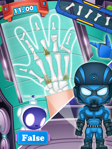 superbohatera uszkodzona ręką przy użyciu jego superpowców. Chroń rękę przed zarazkami i napraw złamane kości jego ręki.