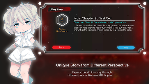 WalkaW drodze do systemu odporności hosta z różnych zestawów umiejętności do wyboru, aktualizacji i używania przeciwko wrogom.Spotkaj się z różnymi wirusami sojuszników, jak idziesz na swój sposób, aby sfinalizować infekcję do ciała gospodarza.Uzupełnij ponad 4 główne rozdziały i łącznie 23 poddrożeń w grze i być dominującą siłą, która mogła zmiażdżyć odporność immunologiczną.