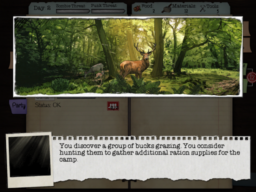 Codzienne wydarzenia oferują nowe niebezpieczeństwa i sytuacje, w których musisz dokonać wyborów, które wpływają na szanse przetrwania twojego obozu.