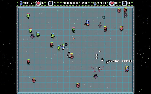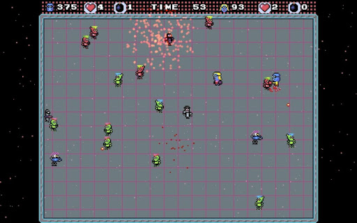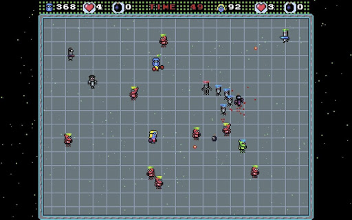 "8 bits space-suvival game. Test your nerves and hit the right color robots to get maximum score in this arcade game"