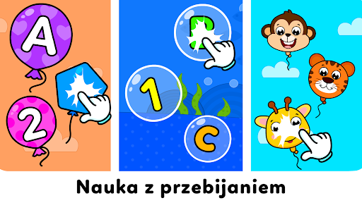 Rozbij mnóstwo balonów i bąbelków, aby nauczyć się liter, liczb, kształtów i nie tylko.