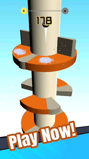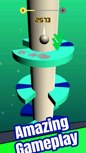 Granie piłki z kroplą: Tower Crush jest tak prosta i niekończąca się. Położyłeś palec na ekranie i przesuwasz go w lewo do prawej, aby obrócić platformę helisy. Nie musisz przenosić piłki na ekranie, tylko platformy, które obracają się wokół słupa centralnego.