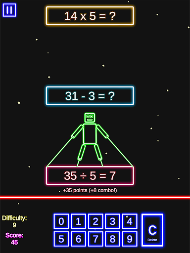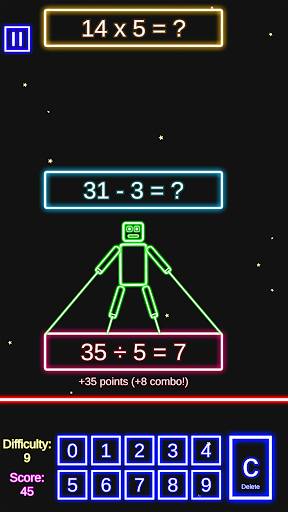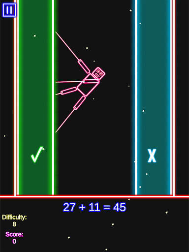 Laser Math to gra matematyczna o tematyce laserowej i neonowej. Przeznaczony jest do ćwiczenia sumowania, odejmowania, mnożenia i dzielenia.