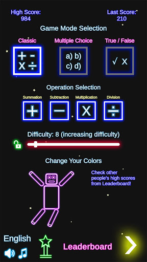 Musisz trzymać Neon Mana z dala od lasera. Ponieważ laser topi Neon Man. Ale może znowu się zregenerować. Jeśli odpowiesz poprawnie na pytania, wykonasz kombinacje i zdobędziesz więcej punktów. Możesz także pokolorować Neon Mana, jak chcesz, zdobywanymi punktami.