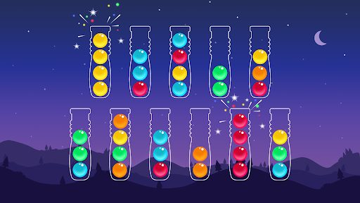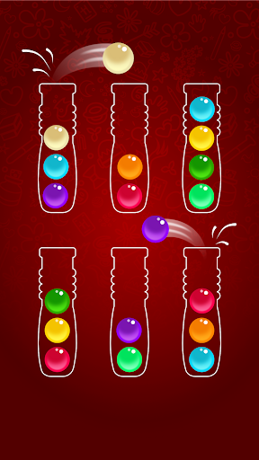Możesz umieszczać na sobie tylko kulki tego samego koloru. Postaraj się najpierw znaleźć puste tuby i przenieś tam kulki. Nie ma jednego poprawnego rozwiązania łamigłówki sortowania kolorowych kulek!