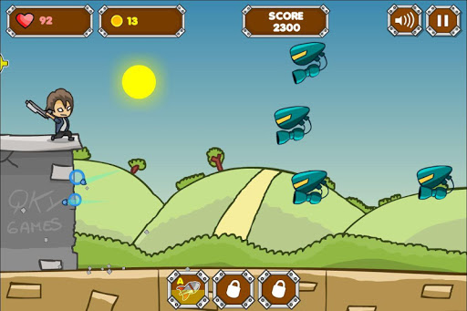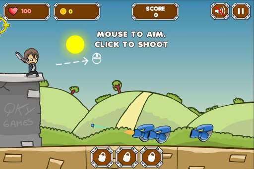 Bloodthirsty robots are on the move and only you can stop them! Collect money and purchase upgrades while you struggle to defend the city walls in this action game.