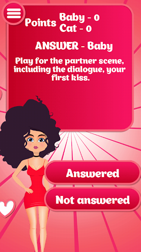 Each partner has the task to score the first more points to win a prize at the end of the game. The winner receives the award, and the loser performs the written task. Starts the game girl. During the game, you will one by one answer questions and perform tasks for two. If you correctly answer a question or accurately perform a task, you get 1 score. The winner is the one who will win the winning number of score first. Good luck