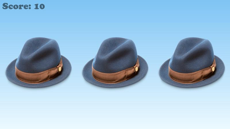 Remember hat with the apple and then open it. Difficulty of the game is increased. Enjoy! Number of hats in levels: 1 - 3 levels - 3 hats. 4 - 6 levels - 4 hats. 7 - 9 levels - 5 hats. 10 - 12 levels - 6 hats. 13 - all next levels - 7 hats.