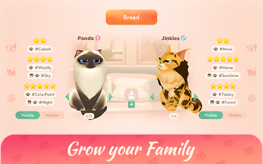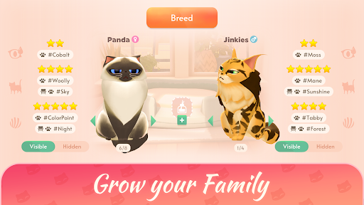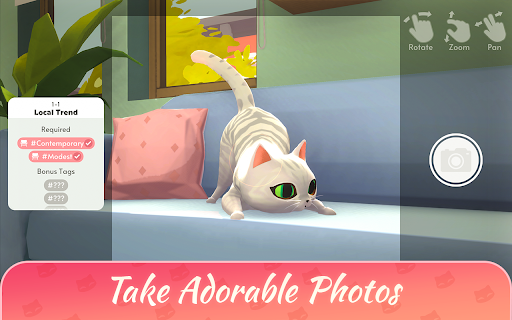 Zrób wyzwania fotograficzne i robienie idealnego obrazu rodziny kotów, aby zbudować obserwowanie mediów społecznościowych i żyć marzeniem z kotami!Hoduj swoją rodzinę kota, hodując urocze kocięta i ozdobić swój dom modnymi meblami w tej przytulnej grze symulatora kota.