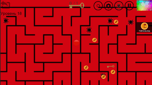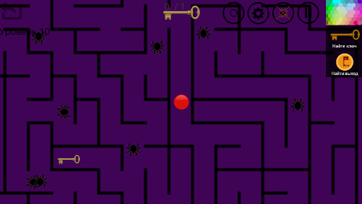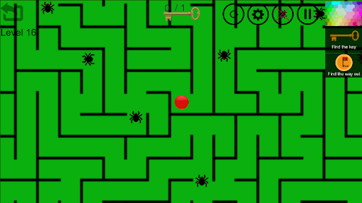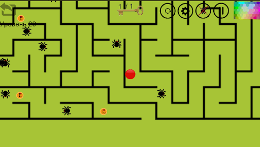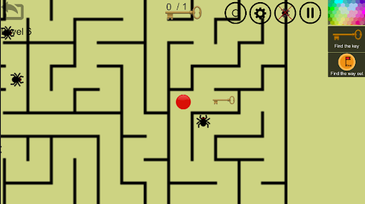 Aby przekazać poziom / grę, musisz przenieść czerwoną piłkę z górnego punktu labiryntu do dolnego punktu.Przede wszystkim musisz znaleźć klucz, aby otworzyć blokadę, która znajduje się na końcu labiryntu, wtedy musisz znaleźć wyjście z labiryntu i nie zapominaj, że powinieneś starać się nie ranować pająków, gdy tracisz i wróciłeś do punktu wyjścia.Powodzenia!