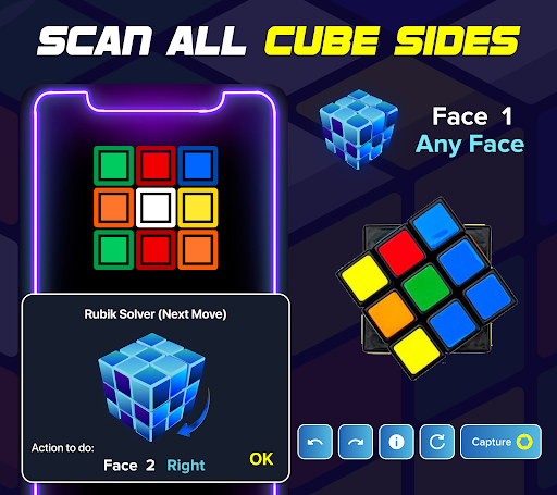Are you tired of getting stuck on your Rubik's Cube? Need a helping hand to conquer the colorful puzzle? Look no further! Introducing Cube Solver, the ultimate Rubik's Cube Solver app designed to easily guide you to victory. Cube Solver app can be a useful tools for individuals interested in solving twisty puzzles, from beginners to experienced Solver Cubers. Use the camera and solve the Rubik's cube quickly! The app uses the camera to scan the cube color state.