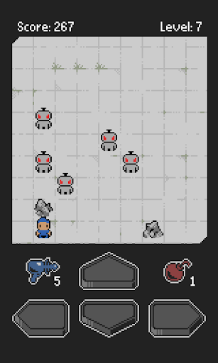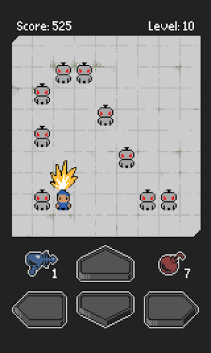 Killer Robot Attack is a puzzle game where you are surrounded by robots and must defeat them all to move on. Every step you take the robots move closer to you. Luckily, the robots aren't that smart, and will crash into each other, causing them to explode! By outsmarting them (as well as using the occasional bomb or teleport), you must defeat all the robots. Each level has more robots, and your goal is to get as far as you can, and get the highest score.