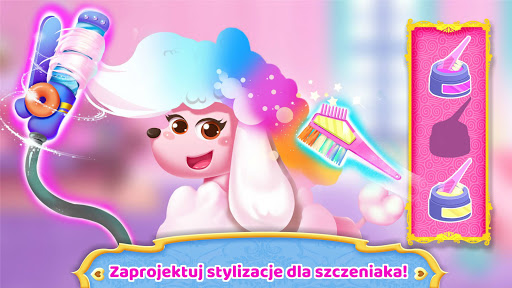 Szczeniaczek potrzebuje pełnej pielęgnacji SPA! Namydl go, spień mydło, a potem spłucz wszystko do czysta. I jak? Nie zostało trochę piany? Przeciągnij słuchawkę prysznica i zmyj bąbelki!