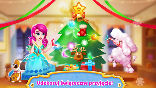 Księżniczka ze swoimi zwierzątkami ruszyła na przyjęcie! Dekoracje nie są jeszcze gotowe? Zawieś świąteczne kolorowe światełka. Ubierz choinkę w dzwonki i świąteczne skarpety. Nie zapomnij o świątecznych prezentach!